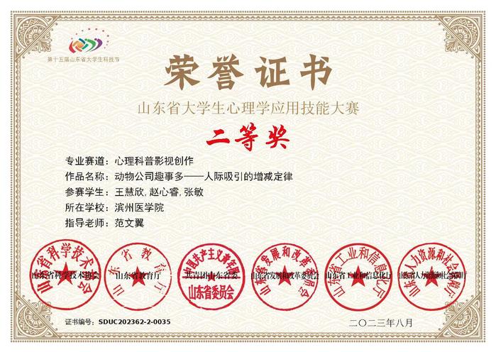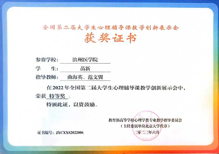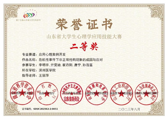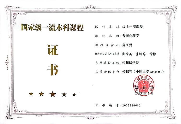 专业优势与特色 我校应用心理学专业始建于2004年,是我国首批开设应用心理学专业的医学院校之一。专业建设了山东省精神卫生中心等16家高水平实践教学基地,形成了具有滨医特色的应用心理学专业培养体系。该专业于2012年获批山东省应用型人才培养特色名校建设专业,2014年设立应用心理专业硕士一级学位点和医学心理学二级硕士学位点,2016年入选山东省高水平应用型立项建设专业群,2019年入选山东省一流本科建设专业。本专业核心课程《普通心理学》获批国家级一流本科课程、山东省课程思政示范课程,《生理心理学》获批山东省一流本科课程。